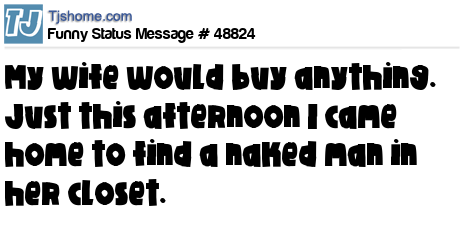 X is My wife would buy anything. Just this afternoon I came home to find a naked man in her closet.