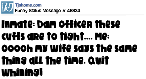 X Inmate: Dam Officer these cuffs are to tight.... Me: Ooooh my wife says the same thing all the time. Quit whining!