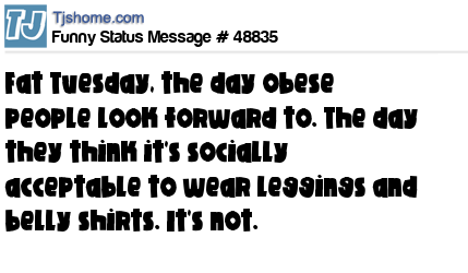 X says Fat Tuesday, the day obese people look forward to. The day they think it's socially acceptable to wear leggings and belly shirts. It's not.