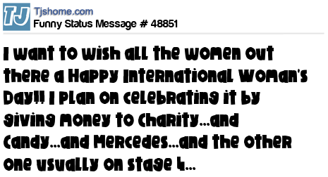 X I want to wish all the women out there a Happy International Woman's Day!! I plan on celebrating it by giving money to Charity...and Candy...and Mercedes...and the other one usually on stage 4...