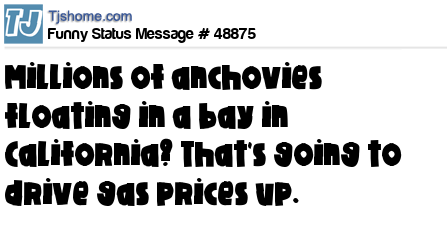 X  Millions of anchovies floating in a bay in California? That's going to drive gas prices up.