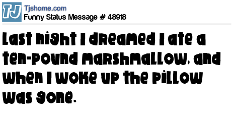X says Last night I dreamed I ate a ten-pound marshmallow, and when I woke up the pillow was gone.