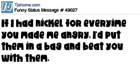 X is If I had nickel for everyime you made me angry, I'd put them in a bag and beat you with them.