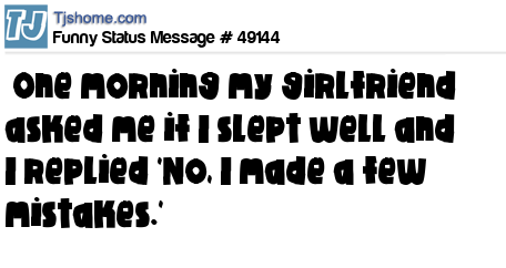 X One morning my girlfriend asked me if I slept well and I replied 'No, I made a few mistakes.'