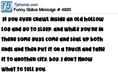 X says If you ever crawl inside an old hollow log and go to sleep, and while you're in there some guys come and seal up both ends and then put it on a truck and take it to another city, boy, I don't know what to tell you.
