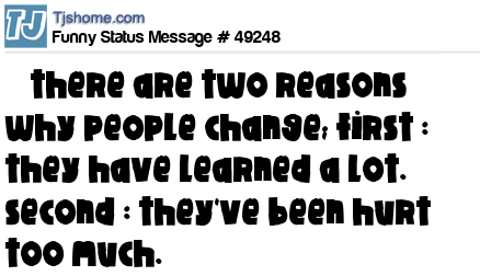 X is • there are two reasons why people change; first : they have learned a lot. second : they've been hurt too much.