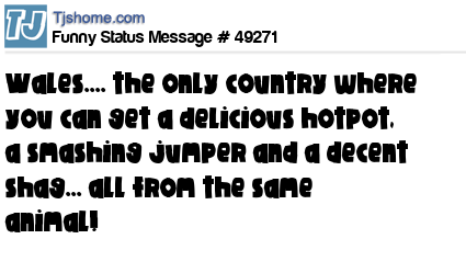 - # 18277 Wales..The only country you can get a great sh@g,a delicious Hotpot and a Smashing Jumper all from the same Animal.