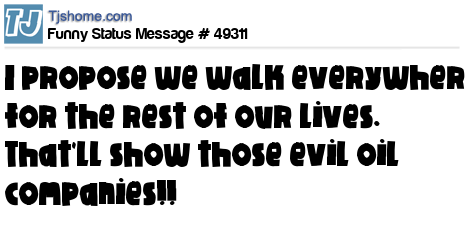 X I propose we walk everywhere for the rest of our lives. That'll show those evil oil companies!!