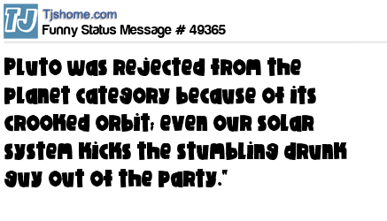 X is Pluto was rejected from the planet category because of its crooked orbit; even our solar system kicks the stumbling drunk guy out of the party."