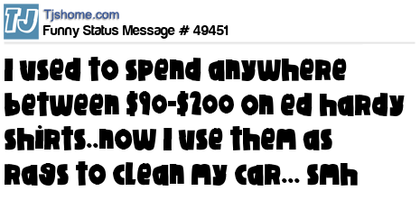 X is I used to spend anywhere between $90-$200 on ed hardy shirts..now I use them as rags to clean my car... smh