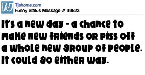 X is It's a new day - a chance to make new friends or piss off a whole new group of people. It could go either way.