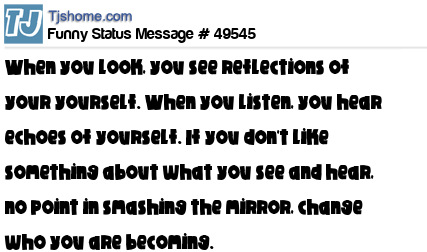 X is When you look, you see reflections of your yourself. When you listen, you hear echoes of yourself. If you don't like something about what you see and hear, no point in smashing the mirror, change who you are becoming.