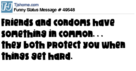 - # 49046 Friends are like condoms: They protect you when things get hard.