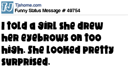 - # 180797 I told a girl in the grocery store that she drew her eyebrows on way to high. She just stood there with a surprised look on her face.