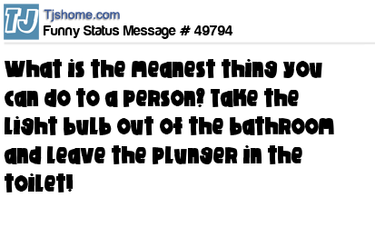 X is What is the meanest thing you can do to a person? Take the light bulb out of the bathroom and leave the plunger in the toilet!