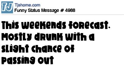 - # 41245 This weekends forecast; Mostly drunk, Scattered shots, with a slight chance of falling down.!!