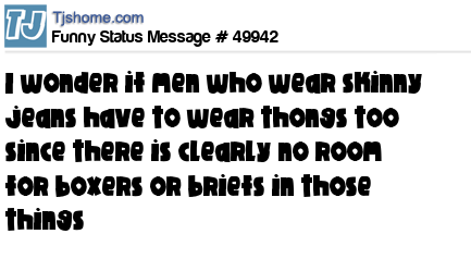 X is i wonder if men who wear skinny jeans have to wear thongs too since there is clearly no room for boxers or briefs in those things