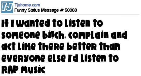 X is If I wanted to listen to someone bi!ch, complain and act like there better than everyone else I'd listen to RAP music