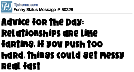 X is Advice for the Day: Relationships are like farting, if you push too hard, things could get messy real fast