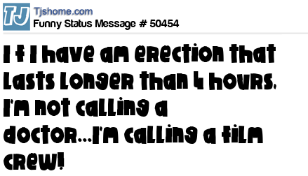 - # 34485 If I have a erection lasting 4 hours i'm not calling a doctor...I'm calling a film crew!