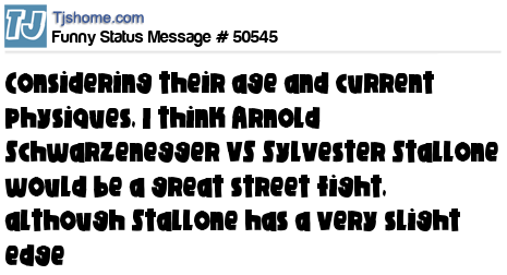X considering their age and current physiques, I think Arnold Schwarzenegger VS Sylvester Stallone would be a great street fight, although Stallone has a very slight edge