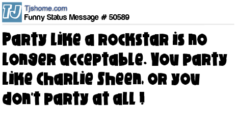 X says Party like a rockstar is no longer acceptable. You party like Charlie Sheen, or you don't party at all !