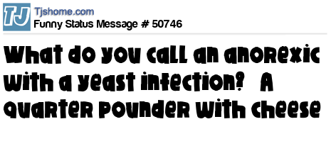 X What do you call an anorexic with a yeast infection? A quarter pounder with cheese