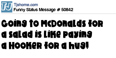 - # 6909 Realized that going to McDonalds for a salad has the temptation equivalent of going to a brothel for a hug.