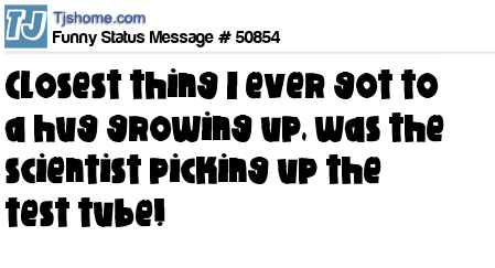 X says Closest thing I ever got to a hug growing up, was the scientist picking up the test tube!
