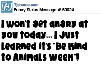 - # 33635 I'm sorry, I can't be mean to you. It's be kind to animals week.