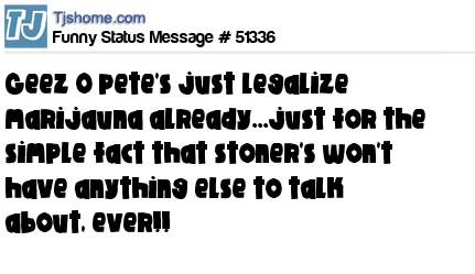 X is Geez O pete's just legalize marijauna already...just for the simple fact that stoner's won't have anything else to talk about, ever!!