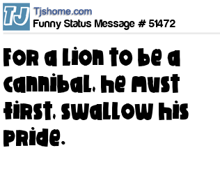 X For a lion to be a cannibal, he must first, swallow his pride.
