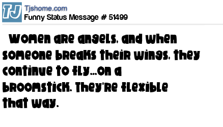 - # 29844 Women are angels. And when someone breaks our wings, we simply continue to fly...on a broomstick. We are flexible like that.