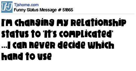 - # 126969 his relationship status set to "It's Complicated" simply because he can't decide on which hand to use.
