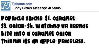 X is popsicle sticks: $1. caramel: $3. onion: $4. watchng ur frends bite into a caramel onion thinkin its an apple: priceless.