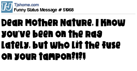 X Dear Mother Nature, I know you've been on the rag lately, but who lit the fuse on your tampon?!?!