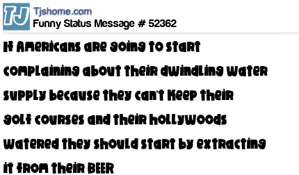 X If Americans are going to start complaining about their dwindling water supply because they can't keep their golf courses and their hollywoods watered they should start by extracting it from their BEER