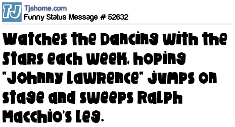 X watches the Dancing with the Stars each week, hoping "Johnny Lawrence" jumps on stage and sweeps Ralph Macchio's leg.