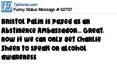X is Bristol Palin is payed as an Abstinence Ambassador... Great, now if we can only get Charlie Sheen to speak on alcohol awareness