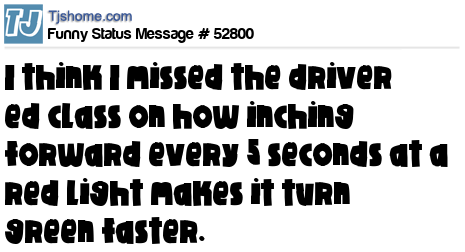 - # 57230 UseI think I missed the driver ed class on how inching forward every 5 seconds at a red light makes it turn green faster