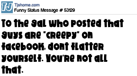 X To the gal who posted that guys are "creepy" on facebook, dont flatter yourself. You're not all that.