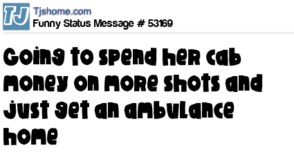 - # 36468 thinking of spending the cab money on more shots and just taking the ambulance home