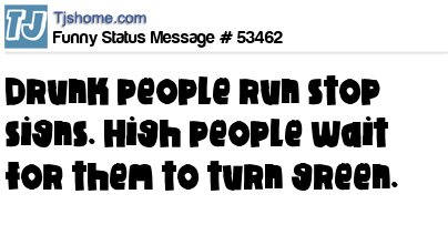 - # 68318 Drunk people run stop signs, high people wait for them to turn green.