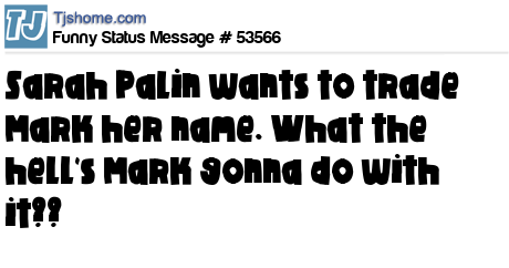X Sarah Palin wants to trade Mark her name. What the hell's Mark gonna do with it??