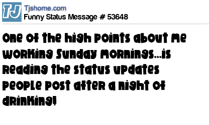 X is One of the high points about me working Sunday mornings...is reading the status updates people post after a night of drinking!