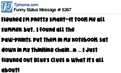 X says Figured I'm pretty smart--it took me all summer, but.. I found all the paw-prints, put them in my notebook, sat down in my thinking chair...& ... I just figured out Blue's Clues & what it's all about!