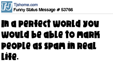 X is In a perfect world you would be able to mark people as spam in real life.