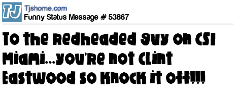X To the redheaded guy on CSI Miami...you're not Clint Eastwood so knock it off!!!