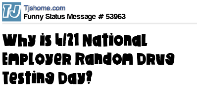 - # 53955 4/20 is the day that some of you celebrate smokin dope. 4/21 is the day your employer (If you have one) celebrates random drug testing!