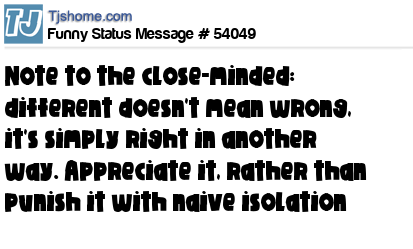 X is Note to the close-minded: different doesn't mean wrong, it's simply right in another way. Appreciate it, rather than punish it with naive isolation